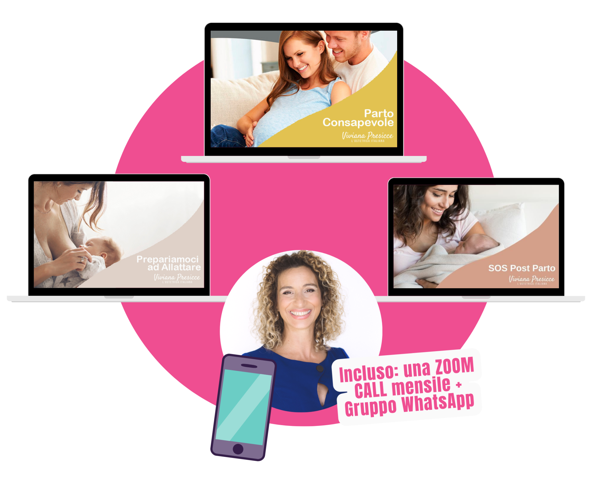 Tutti i miei percorsi prevedono materiali di supporto video, audio, pdf e l’accesso alla mia Community Pronte a Rinascere Pronte a Rinascere. Ogni primo mercoledì del mese rispondo in diretta su Zoom a tutte le domande e condivido informazioni nel Gruppo WhatsApp dedicato. Avrai una professionista al tuo fianco per tutta la gravidanza e oltre!